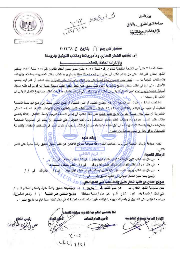 منشور فني رقم 22 لسنة 2022 الصادر من مصلحة الشهر العقاري والتوثيق 4 سنوات ago x الرقم المرجعي: 1037 منشور الشهر العقاري رقم 22 لسنة 2022 يمكنك مشاركة المقالة من خلال تلك الايقونات #منشور الشهر العقاري رقم 22 لسنة 2022