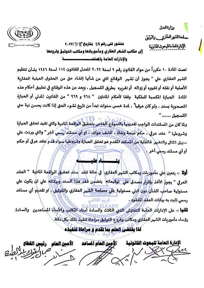 منشور فني رقم 18 لسنة 2023 الصادر من مصلحة الشهر العقاري والتوثيق 3 سنوات ago x الرقم المرجعي: 1086 منشور الشهر العقاري رقم 18 لسنة 2023 يمكنك مشاركة المقالة من خلال تلك الايقونات #منشور الشهر العقاري رقم 18 لسنة 2023