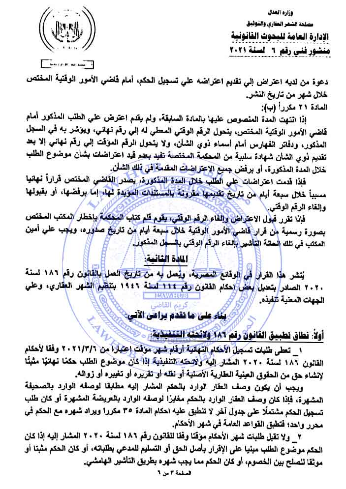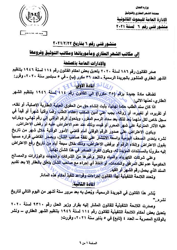 منشور فني رقم 6 لسنة 2021 الصادر من مصلحة الشهر العقاري والتوثيق 5 سنوات ago x الرقم المرجعي: 1167 منشور الشهر العقاري رقم 6 لسنة 2021 يمكنك مشاركة المقالة من خلال تلك الايقونات #منشور الشهر العقاري رقم 6 لسنة 2021