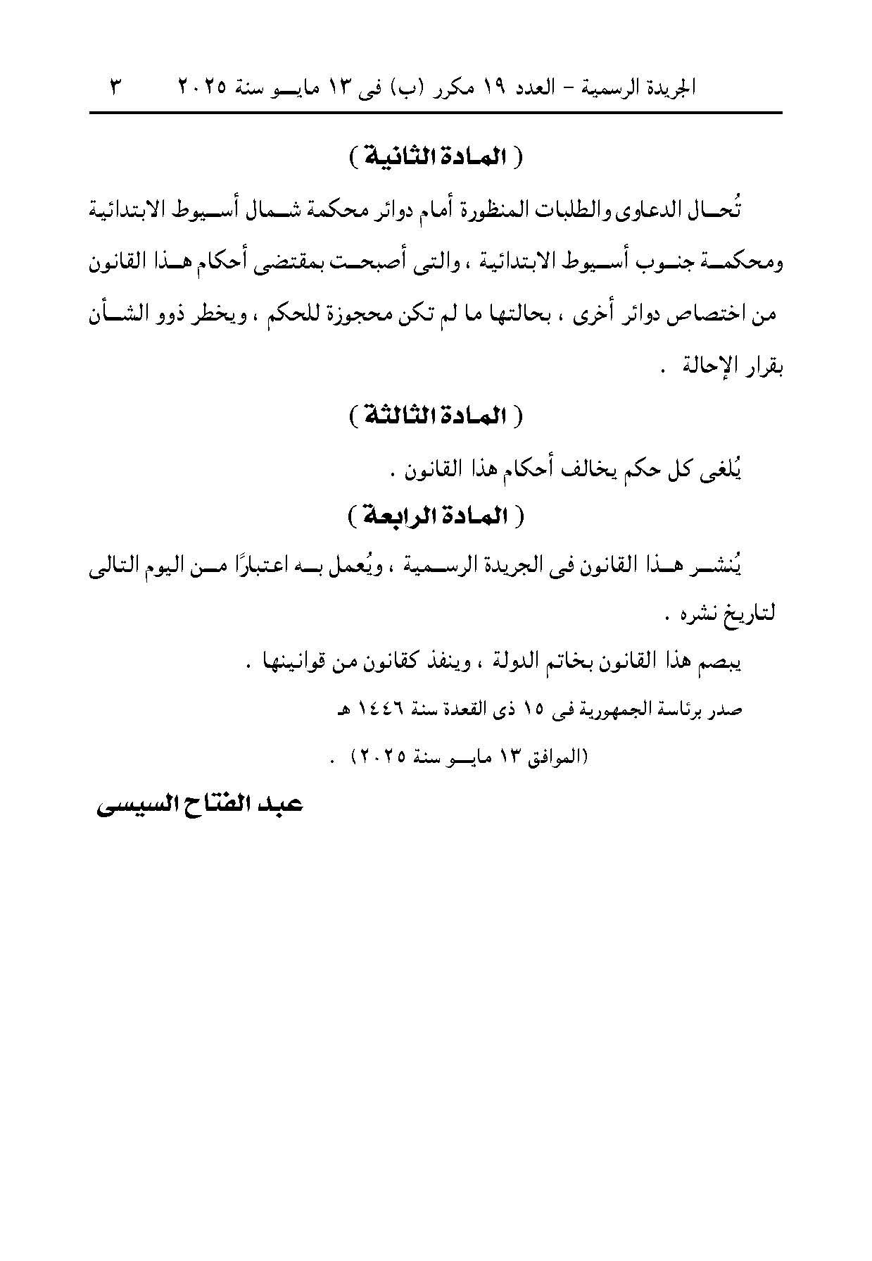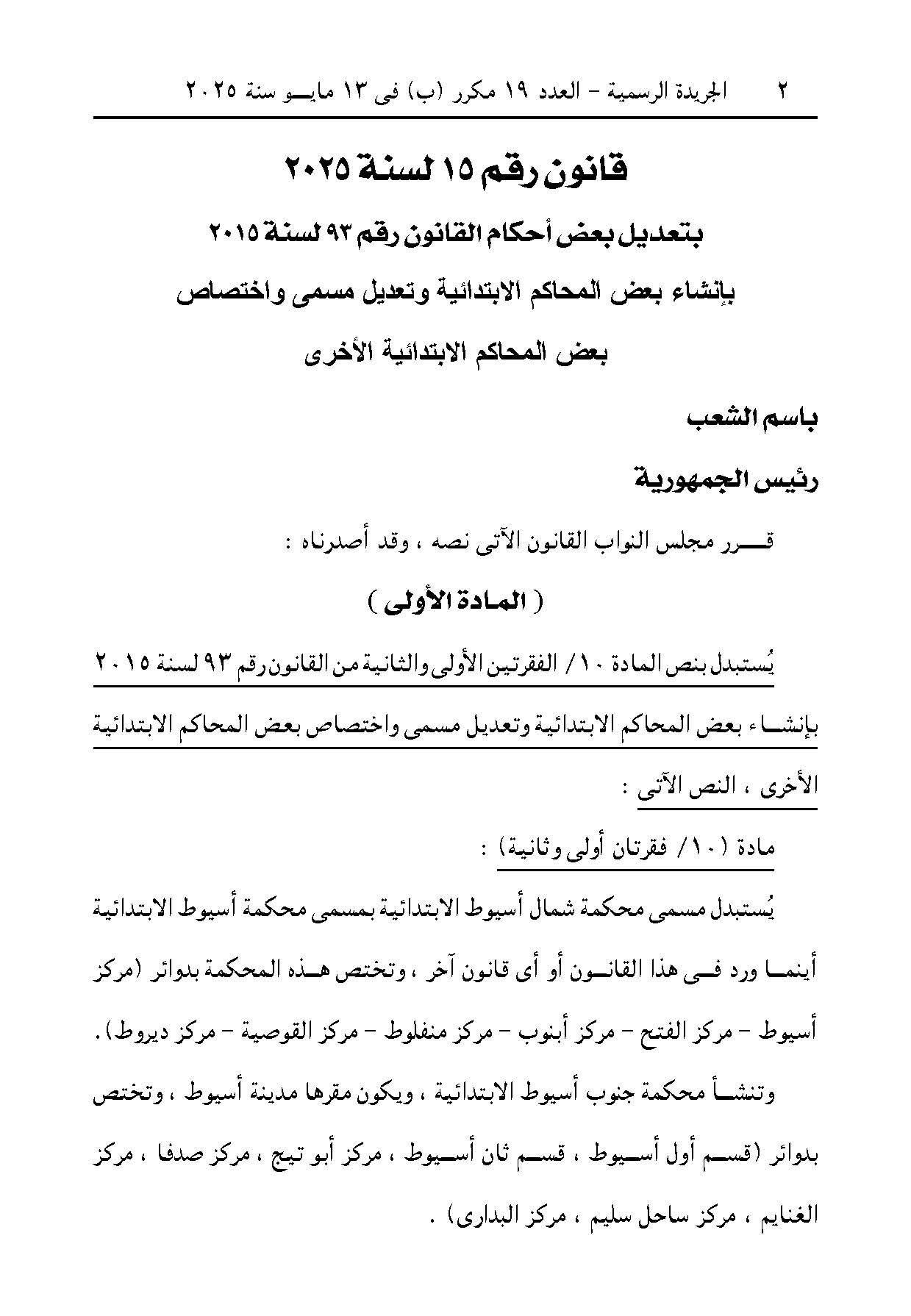 القانون رقم 15 لسنة 2025 9 أشهر ago x الرقم المرجعي: 12277 القانون رقم 15 لسنة 2025 يمكنك مشاركة المقالة من خلال تلك الايقونات