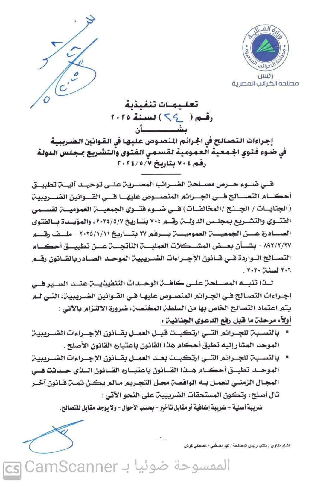 تعليمات تنفيذية رقم 24 لسنة 2025 الصادر من مصلحة الضرائب المصرية بشأن اجراءات التصالح في الجرائم المنصوص عليها في القوانين الضريبية 8 أشهر ago x الرقم المرجعي: 12960 تعليمات تنفيذية رقم 24 لسنة 2025 الصادر من مصلحة الضرائب المصرية بشأن إجراءات التصالح في الجرائم المنصوص عليها في القوانين الضريبية، في ضوء فتوى الجمعية العمومية لقسمي الفتوى والتشريع بمجلس الدولة رقم 704 بتاريخ 7 مايو 2024 يمكنك مشاركة المقالة من خلال تلك الايقونات