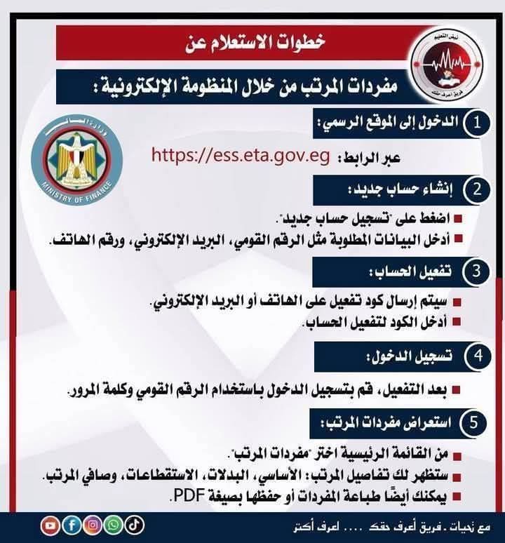 خطوات الاستعلام عن مفردات المرتب من خلال المنظومة الالكترونية 8 أشهر ago x الرقم المرجعي: 13443 خطوات الاستعلام عن مفردات المرتب من خلال المنظومة الالكترونية يمكنك مشاركة المقالة من خلال تلك الايقونات