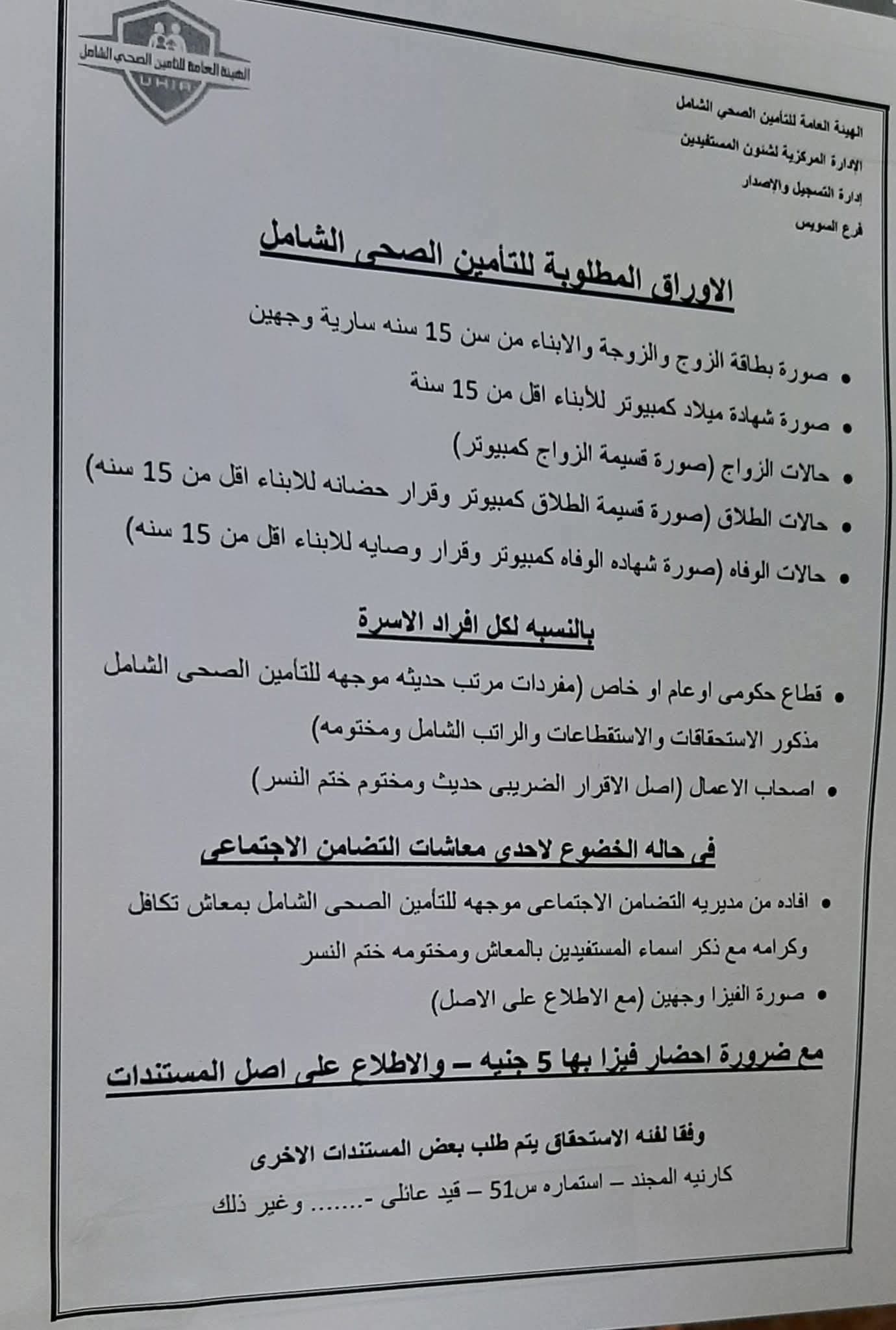 الاوراق المطلوبة للتأمين الصحي الشامل