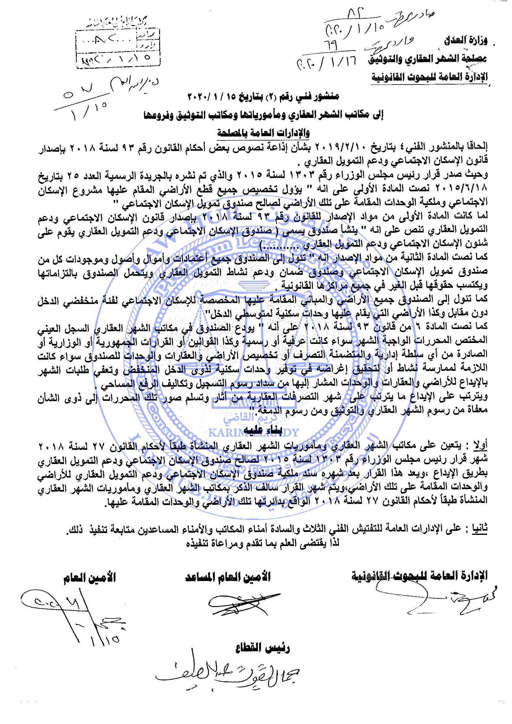 منشور الشهر العقاري رقم 2 لسنة 2020