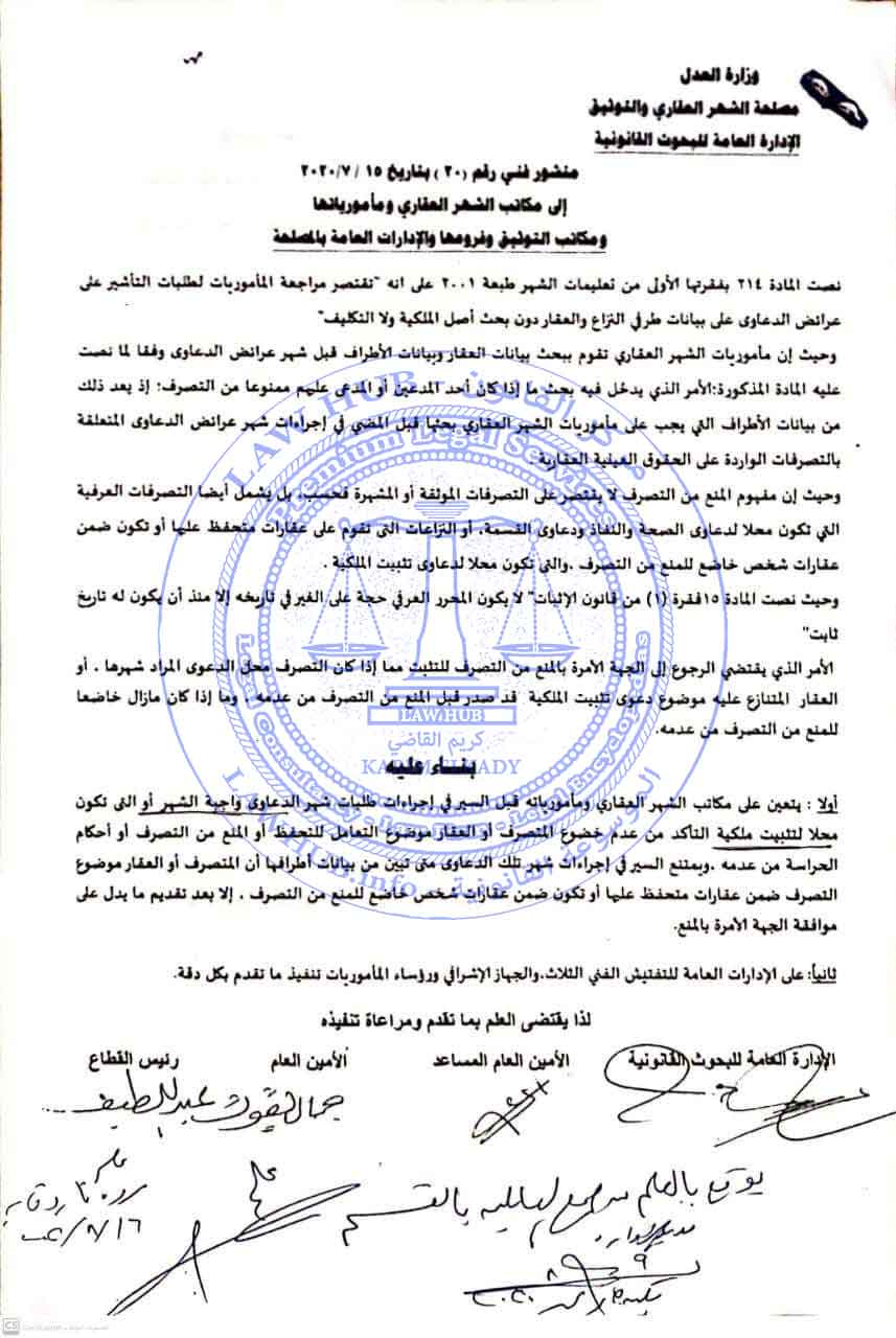 منشور الشهر العقاري رقم 20 لسنة 2020