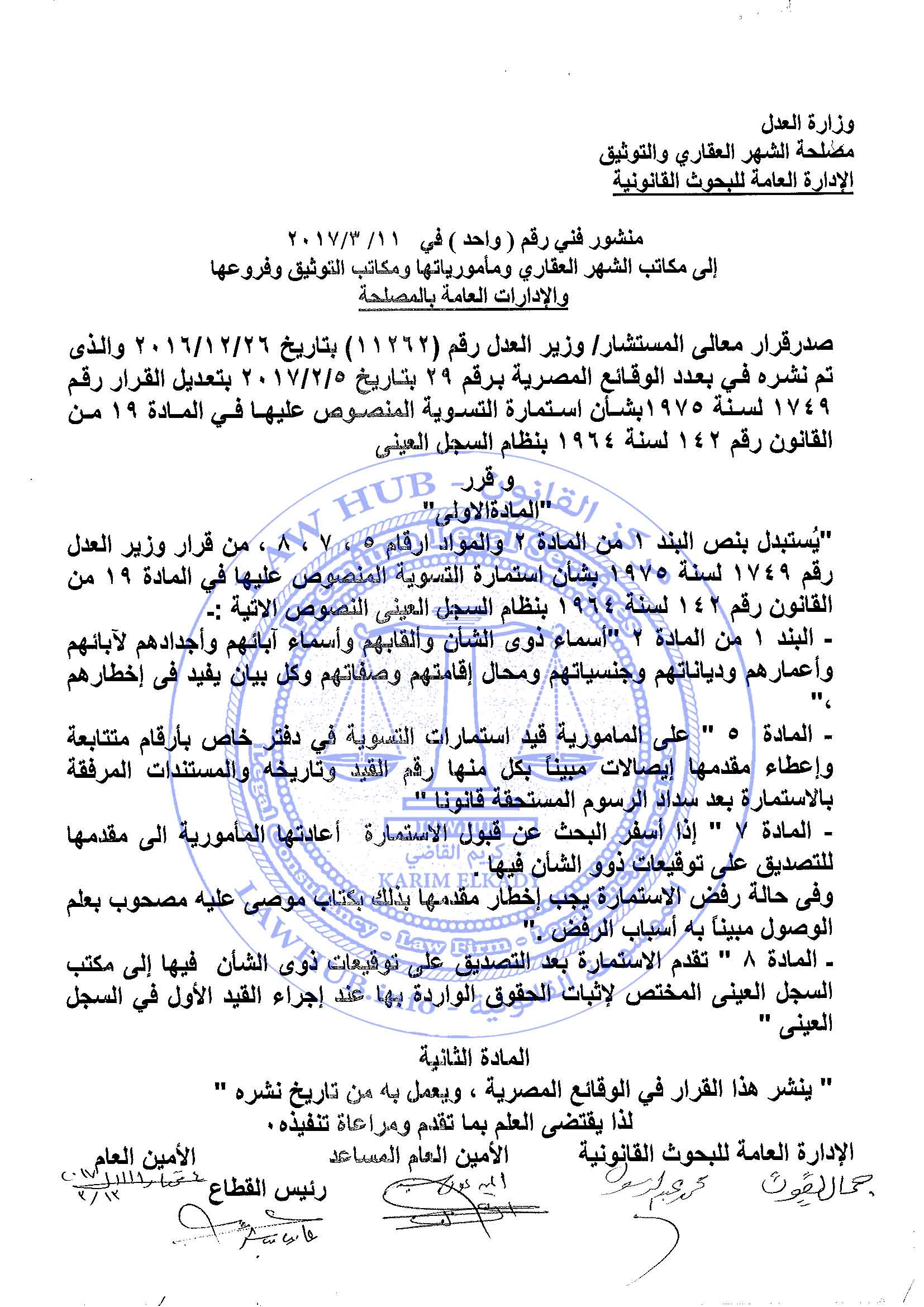 منشور فني رقم 1 لسنة 2017 الصادر من مصلحة الشهر العقاري والتوثيق 9 سنوات ago x الرقم المرجعي: 2736 منشور الشهر العقاري رقم 1 لسنة 2017 يمكنك مشاركة المقالة من خلال تلك الايقونات #منشور الشهر العقاري رقم 1 لسنة 2017