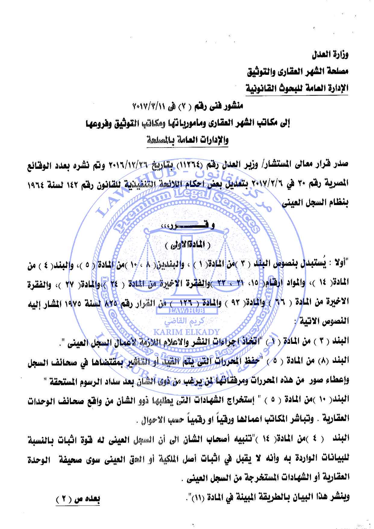 منشور فني رقم 2 لسنة 2017 الصادر من مصلحة الشهر العقاري والتوثيق 9 سنوات ago x الرقم المرجعي: 2737 منشور الشهر العقاري رقم 2 لسنة 2017 يمكنك مشاركة المقالة من خلال تلك الايقونات #منشور الشهر العقاري رقم 2 لسنة 2017