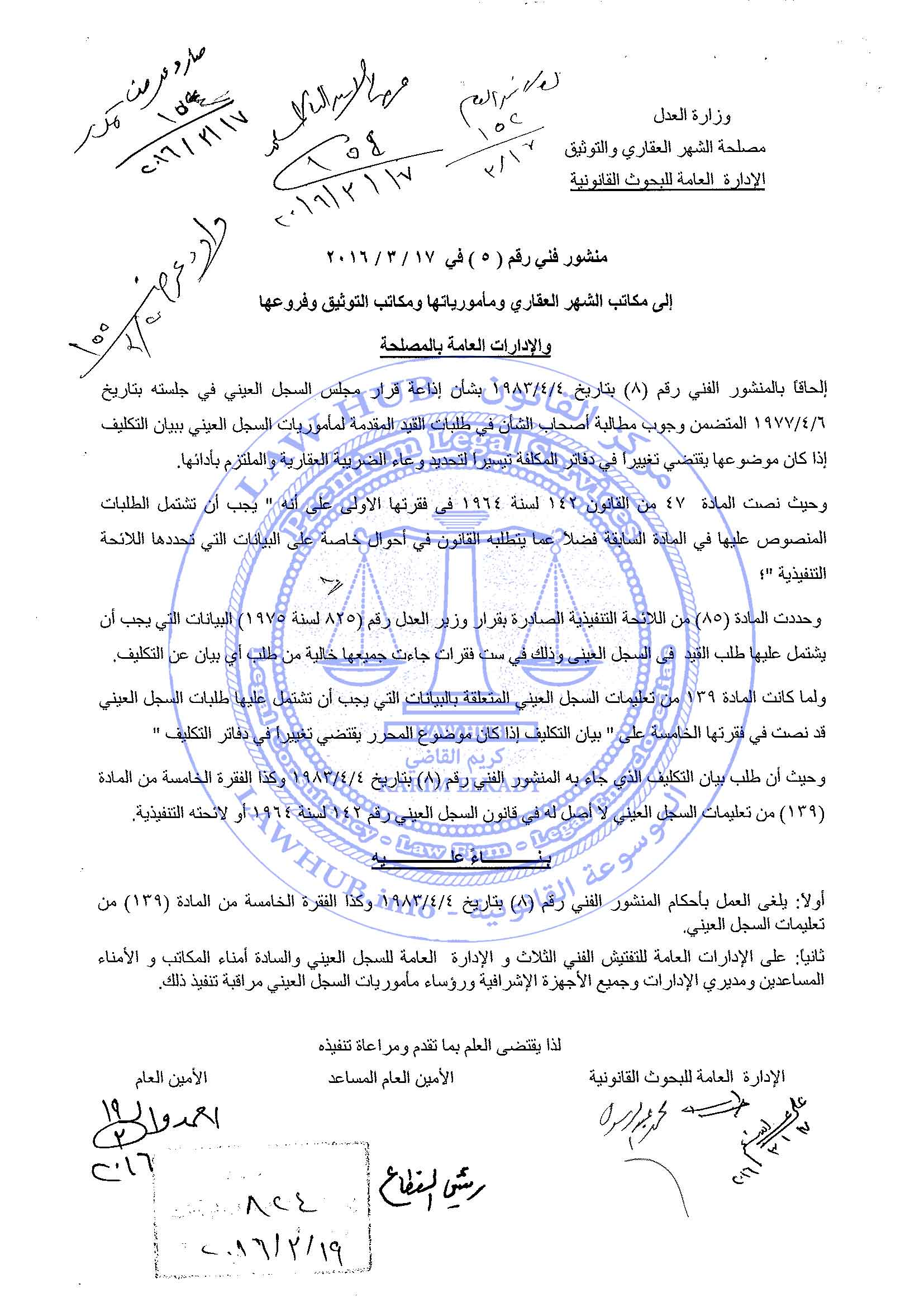 منشور فني رقم 5 لسنة 2016 الصادر من مصلحة الشهر العقاري والتوثيق 10 سنوات ago x الرقم المرجعي: 2794 منشور الشهر العقاري رقم 5 لسنة 2016 يمكنك مشاركة المقالة من خلال تلك الايقونات #منشور الشهر العقاري رقم 5 لسنة 2016