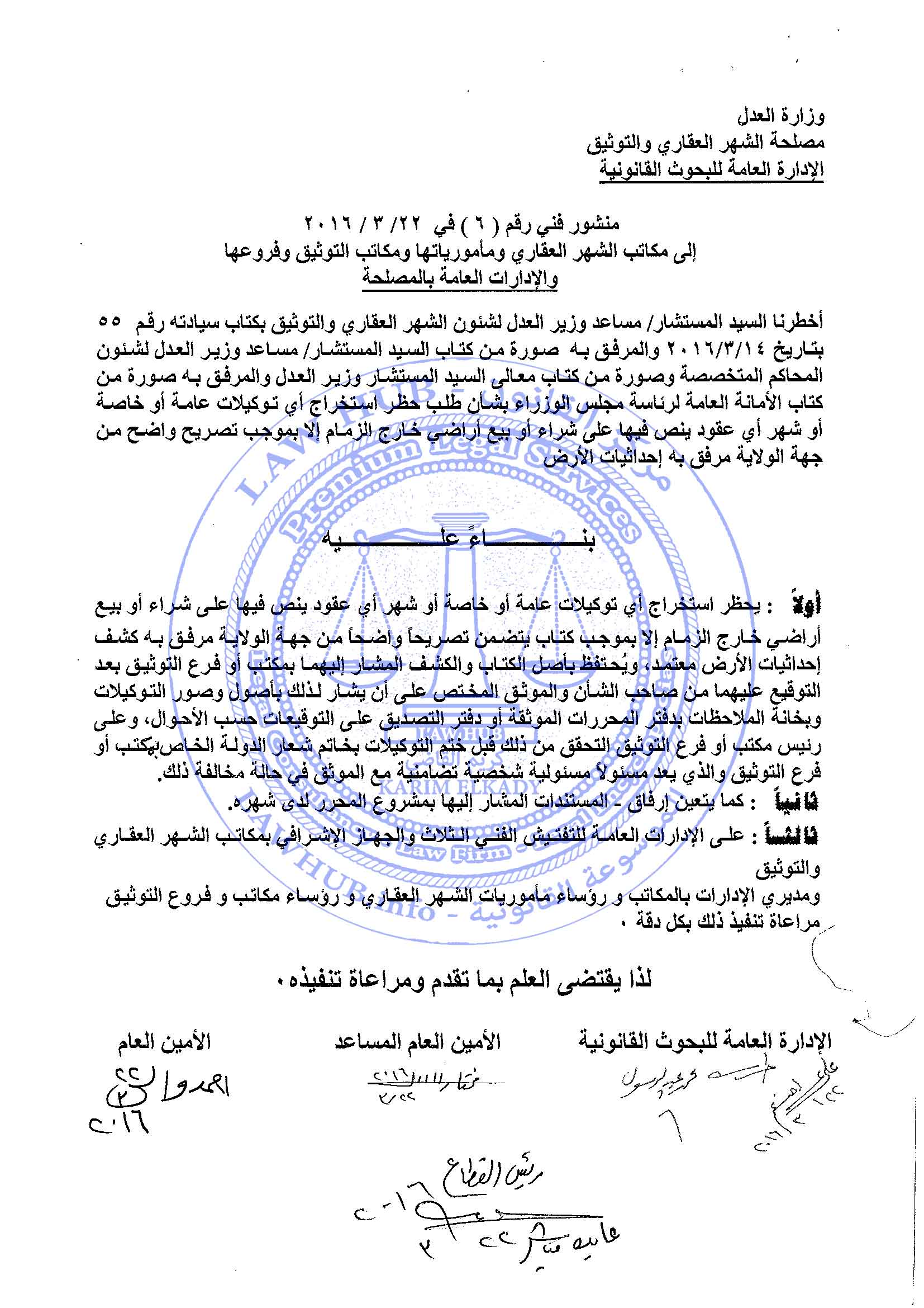 منشور فني رقم 6 لسنة 2016 الصادر من مصلحة الشهر العقاري والتوثيق 10 سنوات ago x الرقم المرجعي: 2795 منشور الشهر العقاري رقم 6 لسنة 2016 يمكنك مشاركة المقالة من خلال تلك الايقونات #منشور الشهر العقاري رقم 6 لسنة 2016