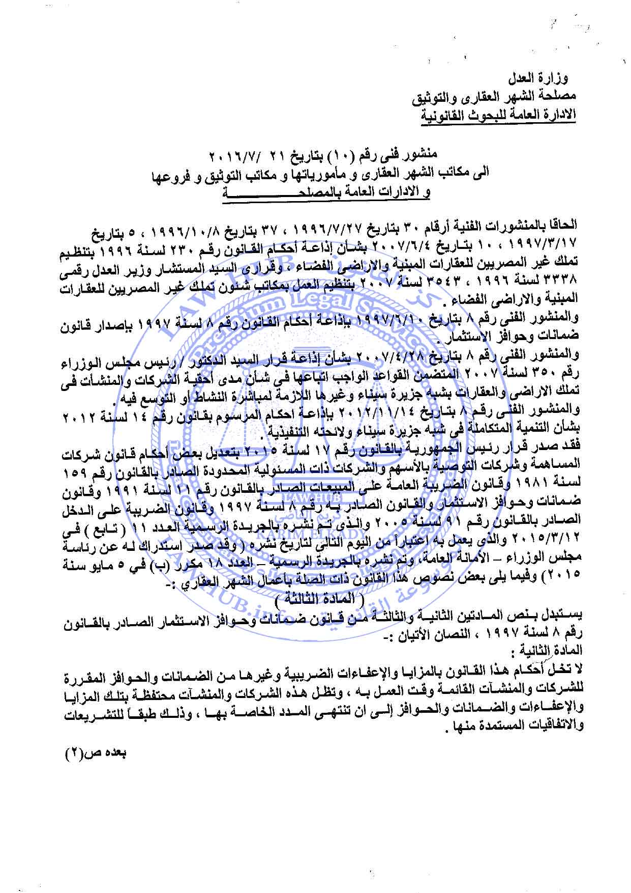 منشور فني رقم 10 لسنة 2016 الصادر من مصلحة الشهر العقاري والتوثيق 10 سنوات ago x الرقم المرجعي: 2799 منشور الشهر العقاري رقم 10 لسنة 2016 يمكنك مشاركة المقالة من خلال تلك الايقونات #منشور الشهر العقاري رقم 10 لسنة 2016