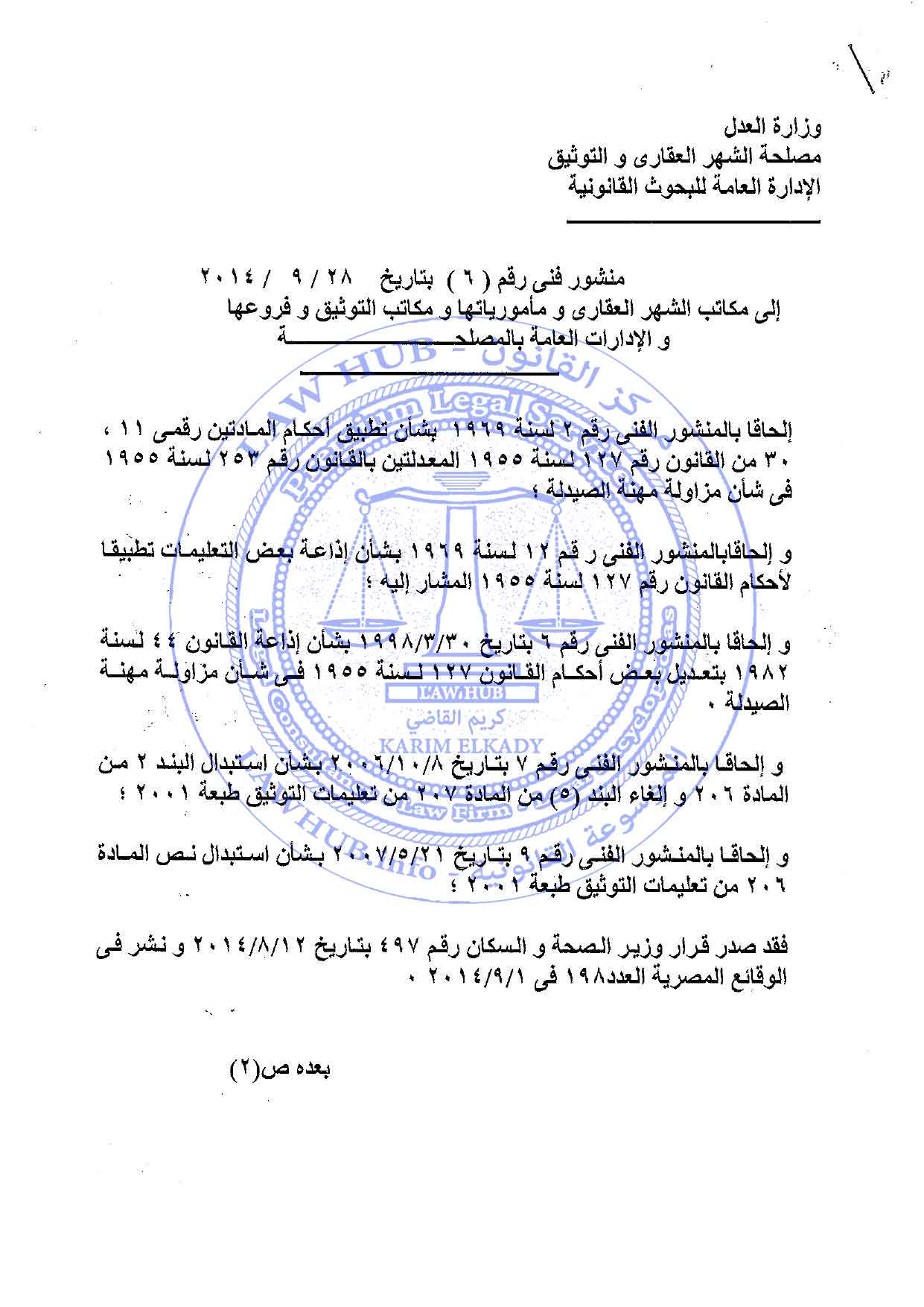 منشور فني رقم 6 لسنة 2014 الصادر من مصلحة الشهر العقاري والتوثيق 11 سنة ago x الرقم المرجعي: 2865 منشور الشهر العقاري رقم 6 لسنة 2014 يمكنك مشاركة المقالة من خلال تلك الايقونات #منشور الشهر العقاري رقم 6 لسنة 2014