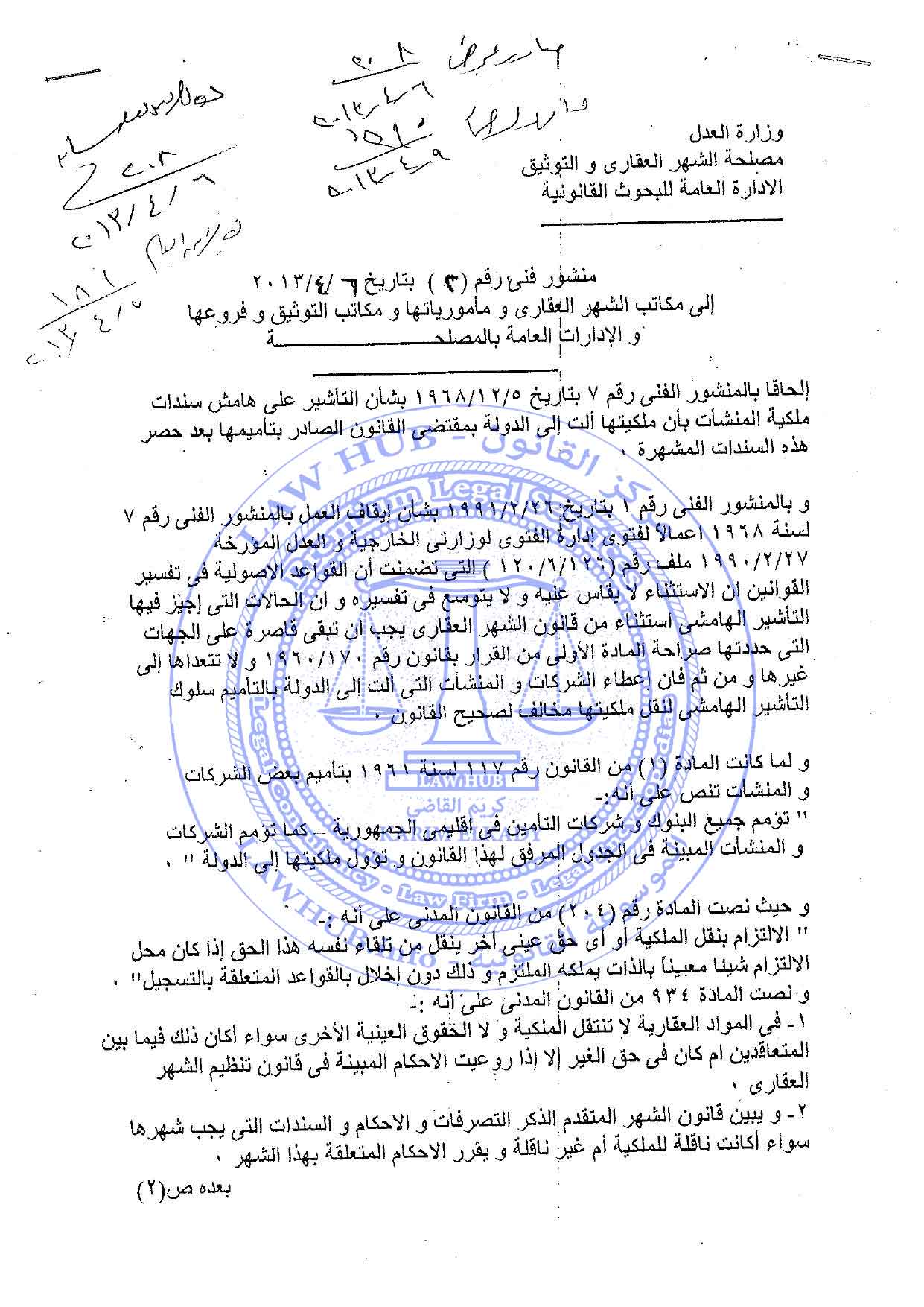 منشور فني رقم 2 لسنة 2013 الصادر من مصلحة الشهر العقاري والتوثيق 13 سنة ago x الرقم المرجعي: 2880 منشور الشهر العقاري رقم 2 لسنة 2013 يمكنك مشاركة المقالة من خلال تلك الايقونات #منشور الشهر العقاري رقم 2 لسنة 2013