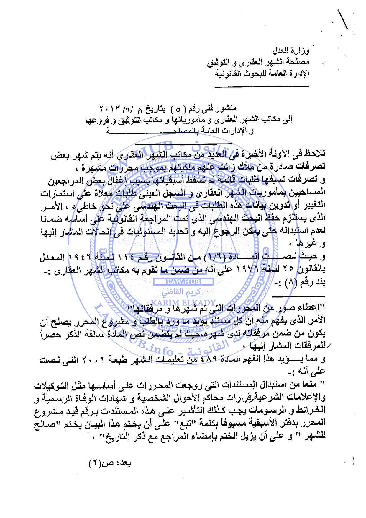 منشور فني رقم 5 لسنة 2013 الصادر من مصلحة الشهر العقاري والتوثيق 12 سنة ago x الرقم المرجعي: 2883 منشور الشهر العقاري رقم 5 لسنة 2013 يمكنك مشاركة المقالة من خلال تلك الايقونات #منشور الشهر العقاري رقم 5 لسنة 2013