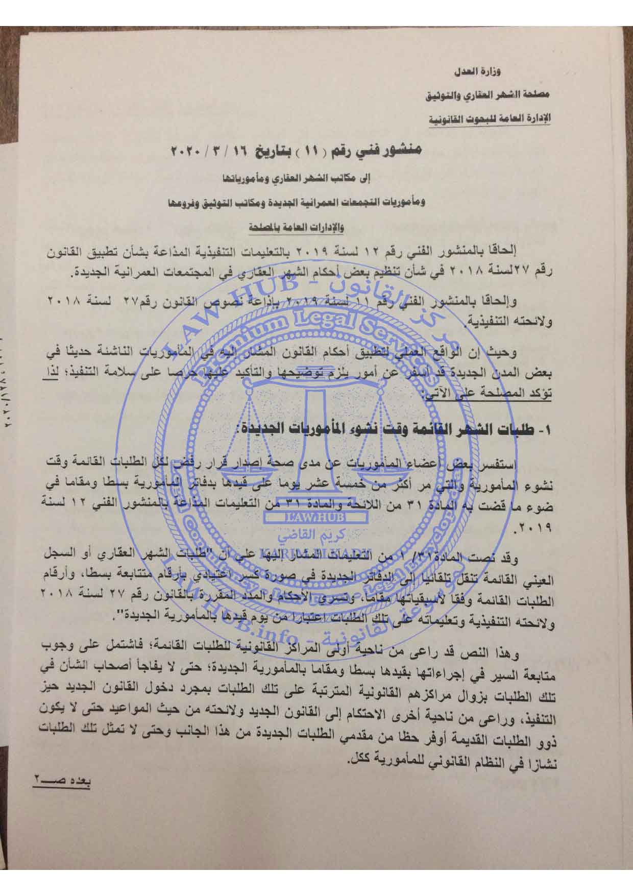 منشور فني رقم 11 لسنة 2020 الصادر من مصلحة الشهر العقاري والتوثيق 6 سنوات ago x الرقم المرجعي: 3364 منشور الشهر العقاري رقم 11 لسنة 2020 يمكنك مشاركة المقالة من خلال تلك الايقونات #منشور الشهر العقاري رقم 11 لسنة 2020