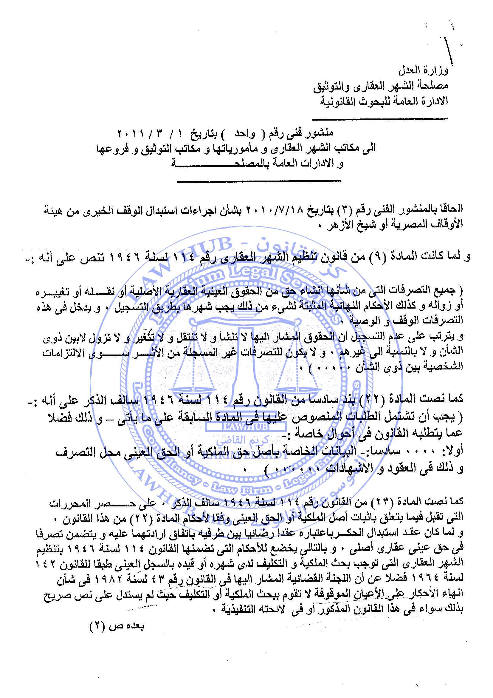 منشور فني رقم 1 لسنة 2011 الصادر من مصلحة الشهر العقاري والتوثيق 15 سنة ago x الرقم المرجعي: 3688 منشور الشهر العقاري رقم 1 لسنة 2011 يمكنك مشاركة المقالة من خلال تلك الايقونات #منشور الشهر العقاري رقم 1 لسنة 2011