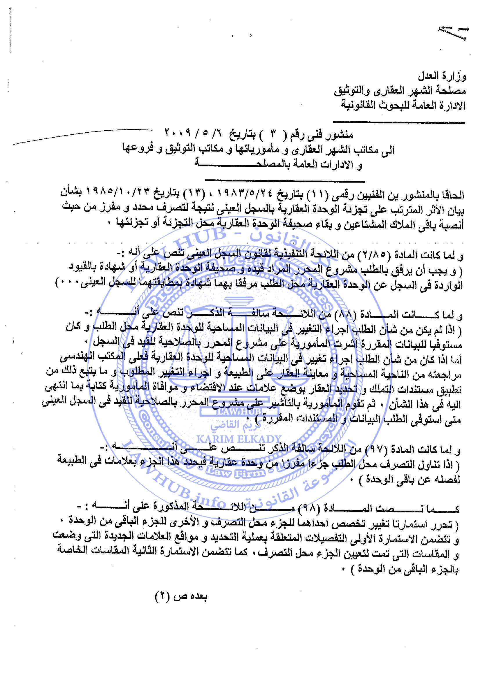 منشور فني رقم 3 لسنة 2009 الصادر من مصلحة الشهر العقاري والتوثيق 17 سنة ago x الرقم المرجعي: 3762 منشور الشهر العقاري رقم 3 لسنة 2009 يمكنك مشاركة المقالة من خلال تلك الايقونات #منشور الشهر العقاري رقم 3 لسنة 2009
