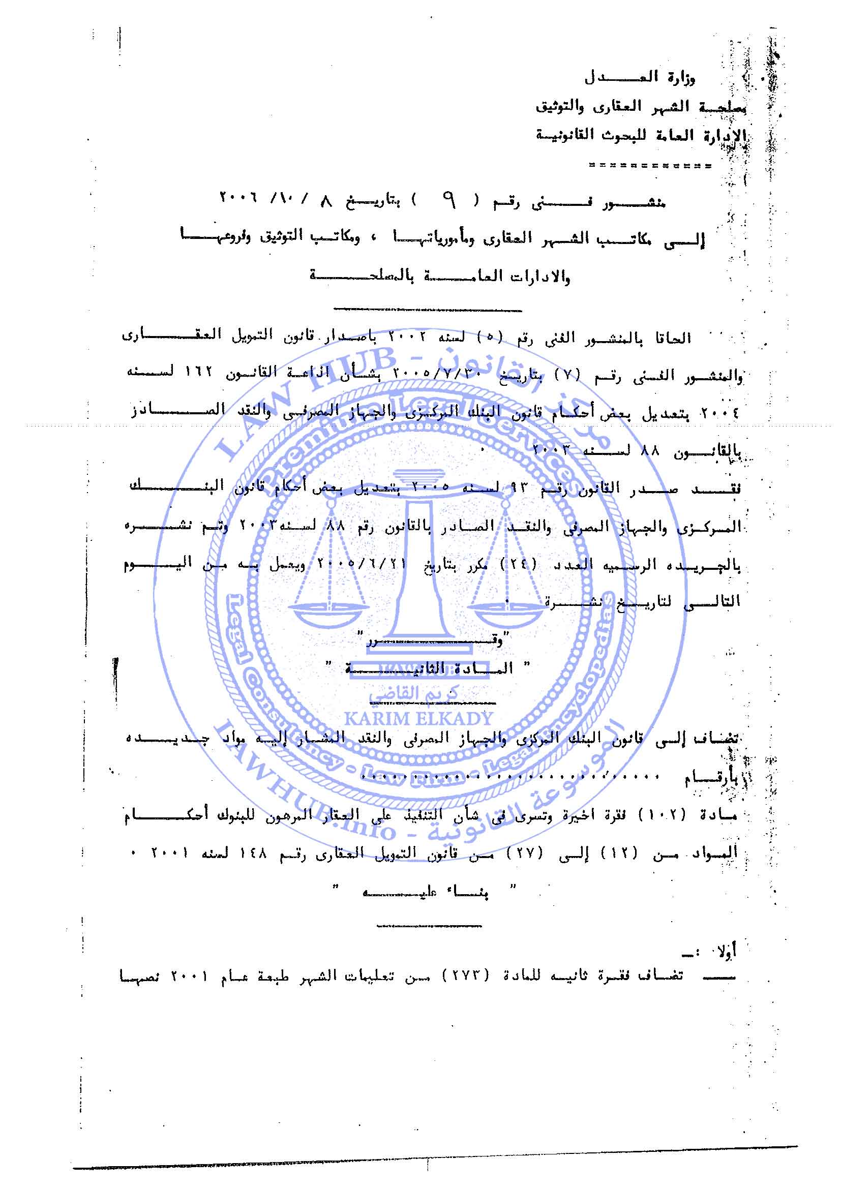 منشور فني رقم 9 لسنة 2006 الصادر من مصلحة الشهر العقاري والتوثيق 19 سنة ago x الرقم المرجعي: 3920 منشور الشهر العقاري رقم 9 لسنة 2006 يمكنك مشاركة المقالة من خلال تلك الايقونات #منشور الشهر العقاري رقم 9 لسنة 2006