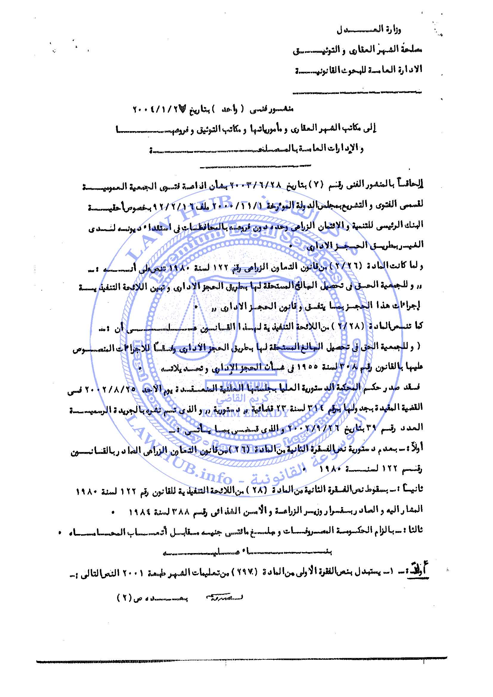 منشور فني رقم 1 لسنة 2004 الصادر من مصلحة الشهر العقاري والتوثيق 22 سنة ago x الرقم المرجعي: 4034 منشور الشهر العقاري رقم 1 لسنة 2004 يمكنك مشاركة المقالة من خلال تلك الايقونات #منشور الشهر العقاري رقم 1 لسنة 2004