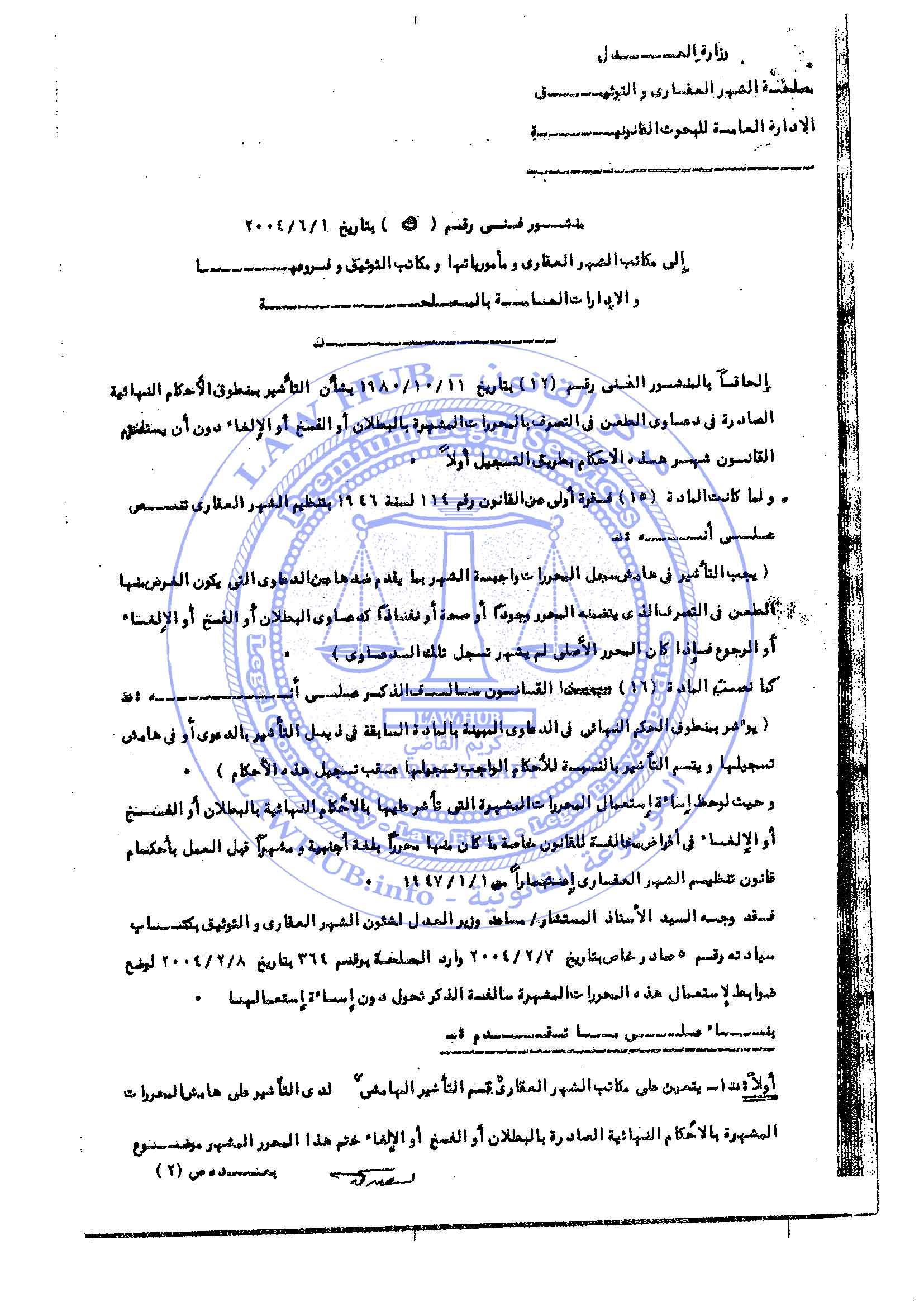 منشور فني رقم 5 لسنة 2004 الصادر من مصلحة الشهر العقاري والتوثيق 22 سنة ago x الرقم المرجعي: 4038 منشور الشهر العقاري رقم 5 لسنة 2004 يمكنك مشاركة المقالة من خلال تلك الايقونات #منشور الشهر العقاري رقم 5 لسنة 2004