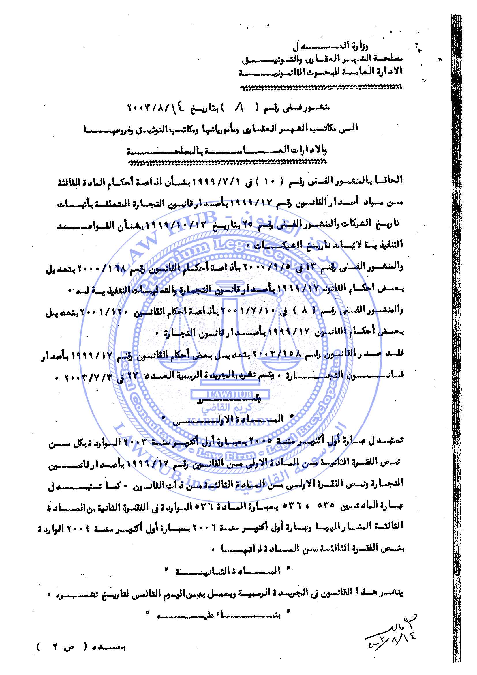 منشور فني رقم 8 لسنة 2003 الصادر من مصلحة الشهر العقاري والتوثيق 22 سنة ago x الرقم المرجعي: 4095 منشور الشهر العقاري رقم 8 لسنة 2003 يمكنك مشاركة المقالة من خلال تلك الايقونات #منشور الشهر العقاري رقم 8 لسنة 2003