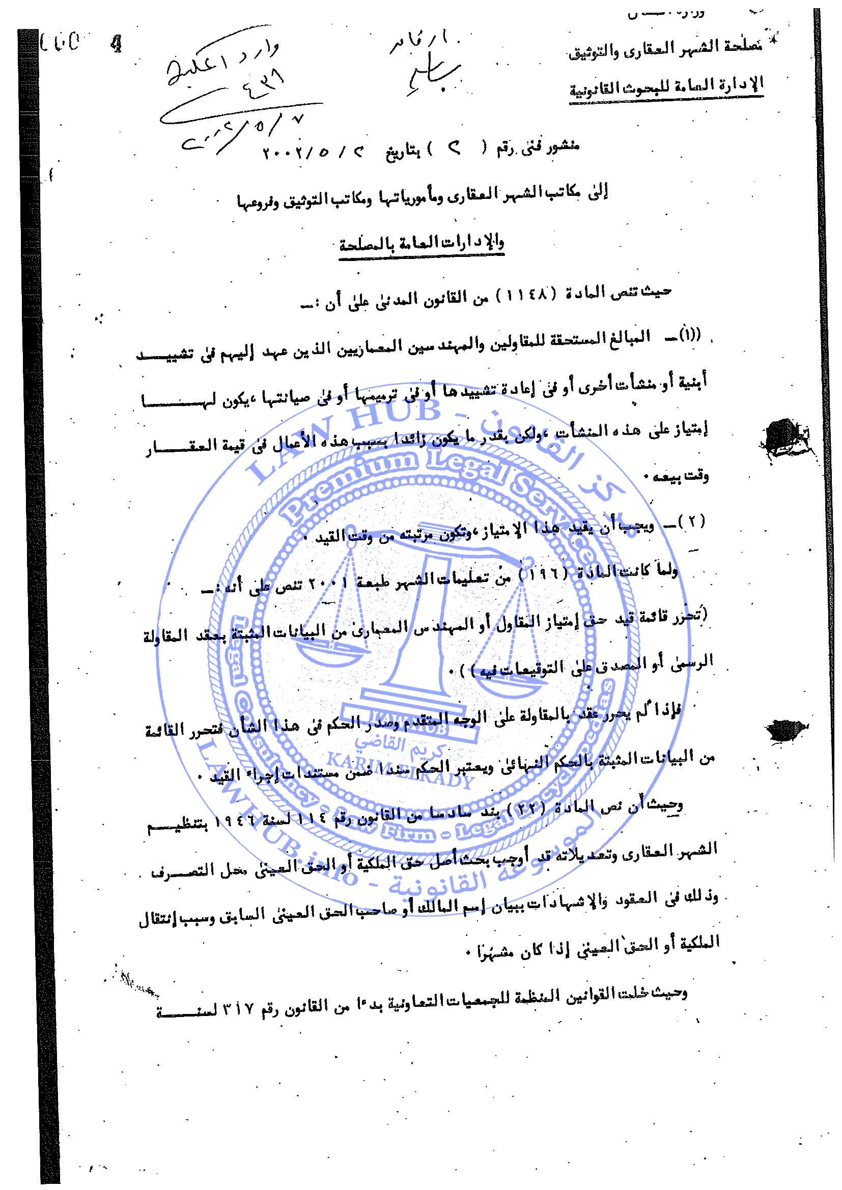 منشور فني رقم 2 لسنة 2002 الصادر من مصلحة الشهر العقاري والتوثيق 24 سنة ago x الرقم المرجعي: 4141 منشور الشهر العقاري رقم 2 لسنة 2002 يمكنك مشاركة المقالة من خلال تلك الايقونات #منشور الشهر العقاري رقم 2 لسنة 2002