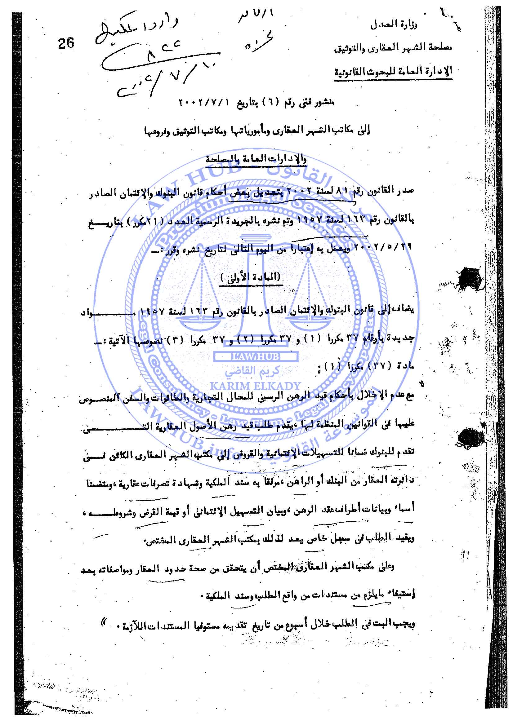 منشور فني رقم 6 لسنة 2002 الصادر من مصلحة الشهر العقاري والتوثيق 24 سنة ago x الرقم المرجعي: 4145 منشور الشهر العقاري رقم 6 لسنة 2002 يمكنك مشاركة المقالة من خلال تلك الايقونات #منشور الشهر العقاري رقم 6 لسنة 2002