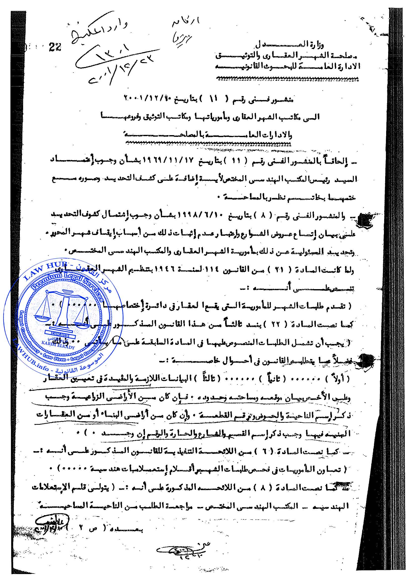 منشور فني رقم 11 لسنة 2001 الصادر من مصلحة الشهر العقاري والتوثيق 24 سنة ago x الرقم المرجعي: 4190 منشور الشهر العقاري رقم 11 لسنة 2001 يمكنك مشاركة المقالة من خلال تلك الايقونات #منشور الشهر العقاري رقم 11 لسنة 2001