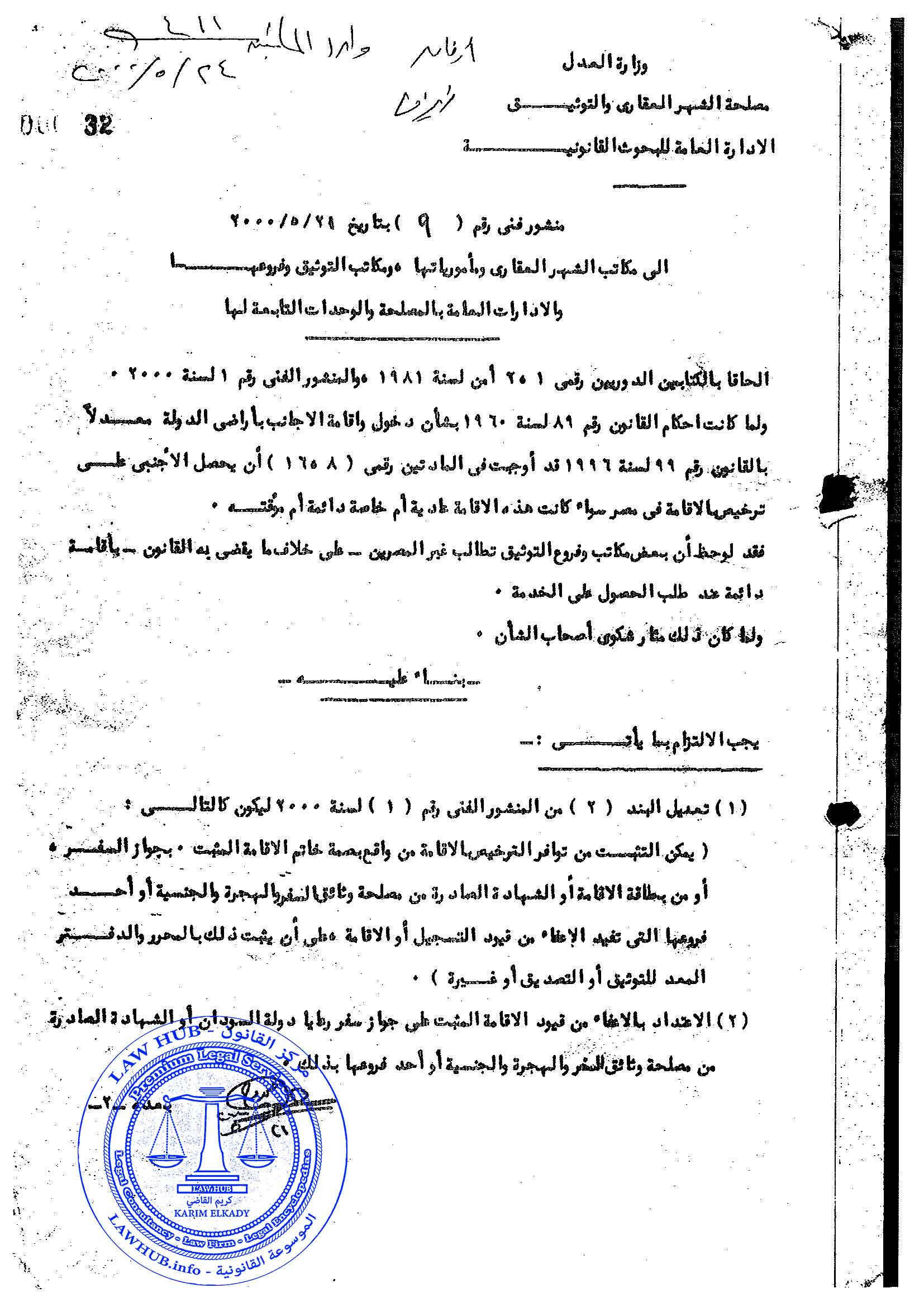 منشور فني رقم 9 لسنة 2000 الصادر من مصلحة الشهر العقاري والتوثيق 26 سنة ago x الرقم المرجعي: 4234 منشور الشهر العقاري رقم 9 لسنة 2000 يمكنك مشاركة المقالة من خلال تلك الايقونات #منشور الشهر العقاري رقم 9 لسنة 2000