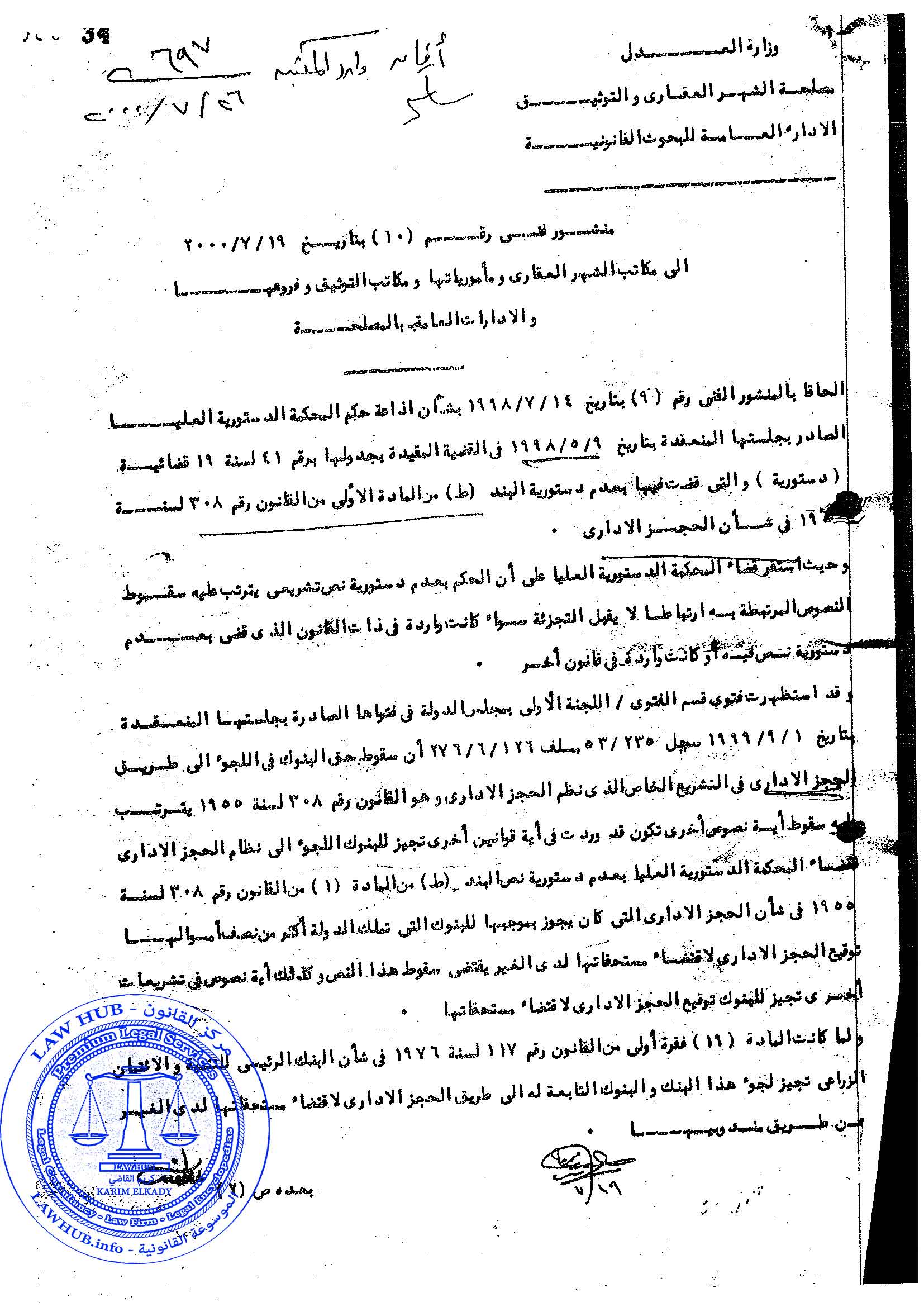 منشور فني رقم 10 لسنة 2000 الصادر من مصلحة الشهر العقاري والتوثيق 26 سنة ago x الرقم المرجعي: 4235 منشور الشهر العقاري رقم 10 لسنة 2000 يمكنك مشاركة المقالة من خلال تلك الايقونات #منشور الشهر العقاري رقم 10 لسنة 2000