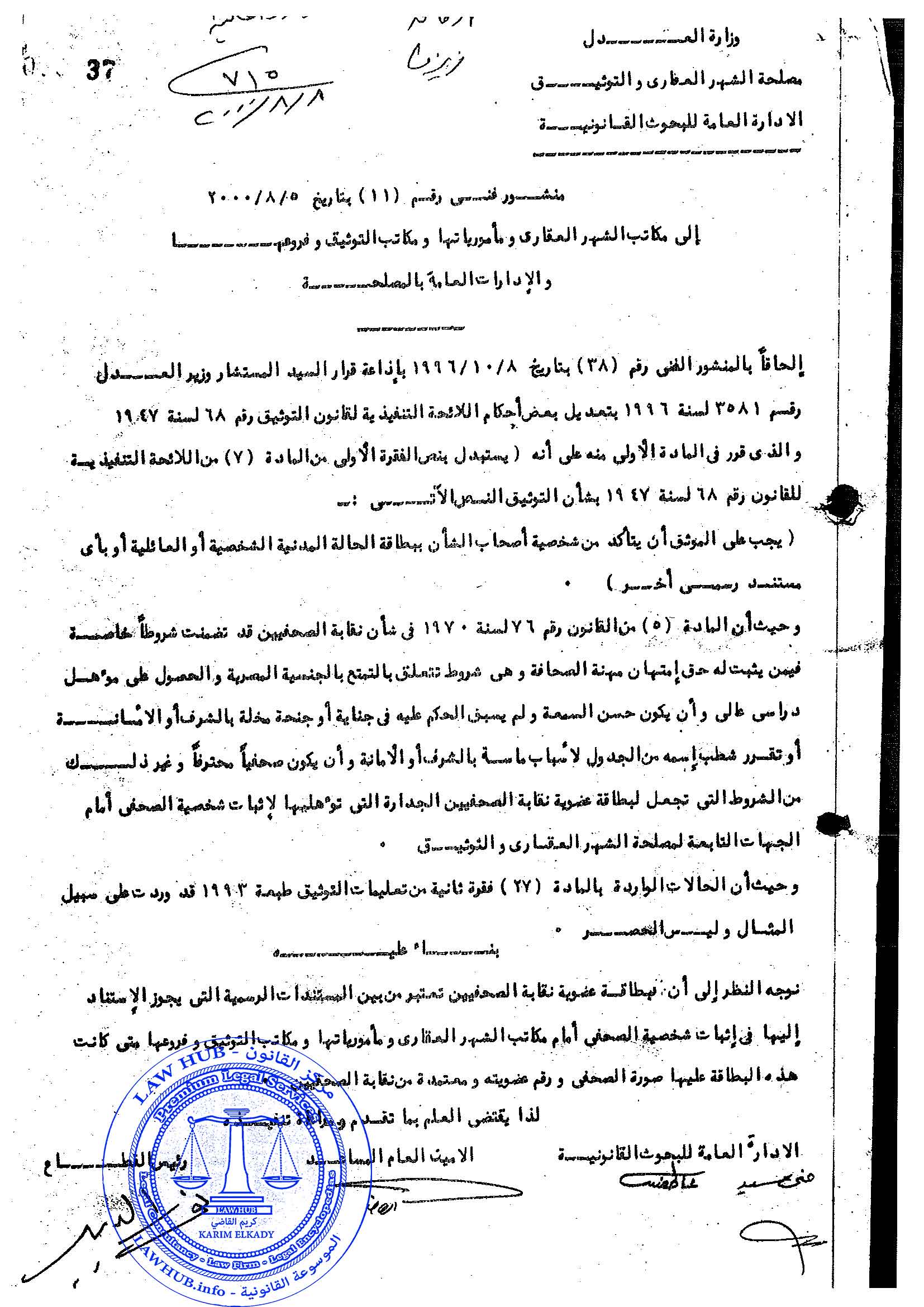 منشور فني رقم 11 لسنة 2000 الصادر من مصلحة الشهر العقاري والتوثيق 25 سنة ago x الرقم المرجعي: 4236 منشور الشهر العقاري رقم 11 لسنة 2000 يمكنك مشاركة المقالة من خلال تلك الايقونات #منشور الشهر العقاري رقم 11 لسنة 2000