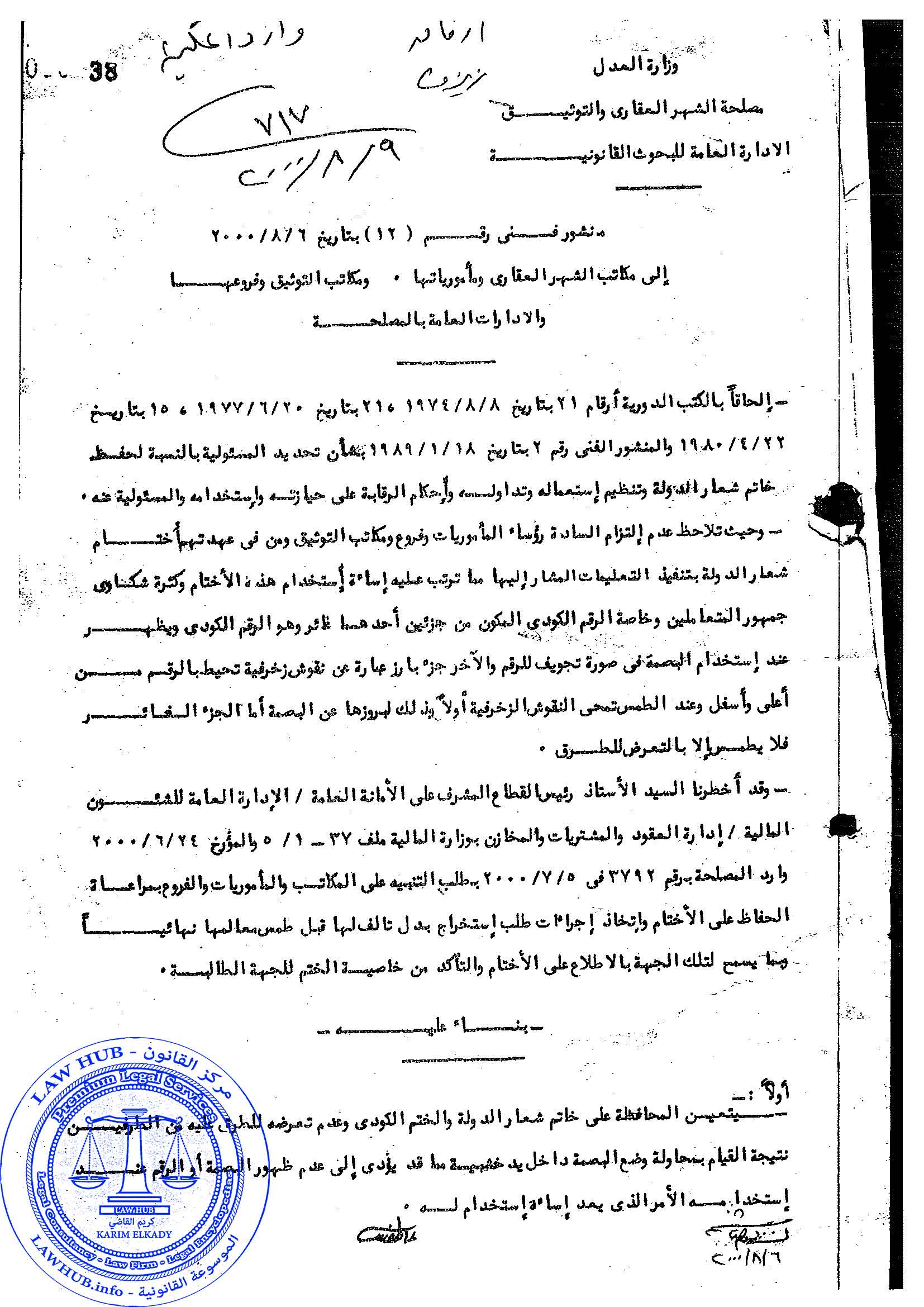 منشور فني رقم 12 لسنة 2000 الصادر من مصلحة الشهر العقاري والتوثيق 25 سنة ago x الرقم المرجعي: 4237 منشور الشهر العقاري رقم 12 لسنة 2000 يمكنك مشاركة المقالة من خلال تلك الايقونات #منشور الشهر العقاري رقم 12 لسنة 2000