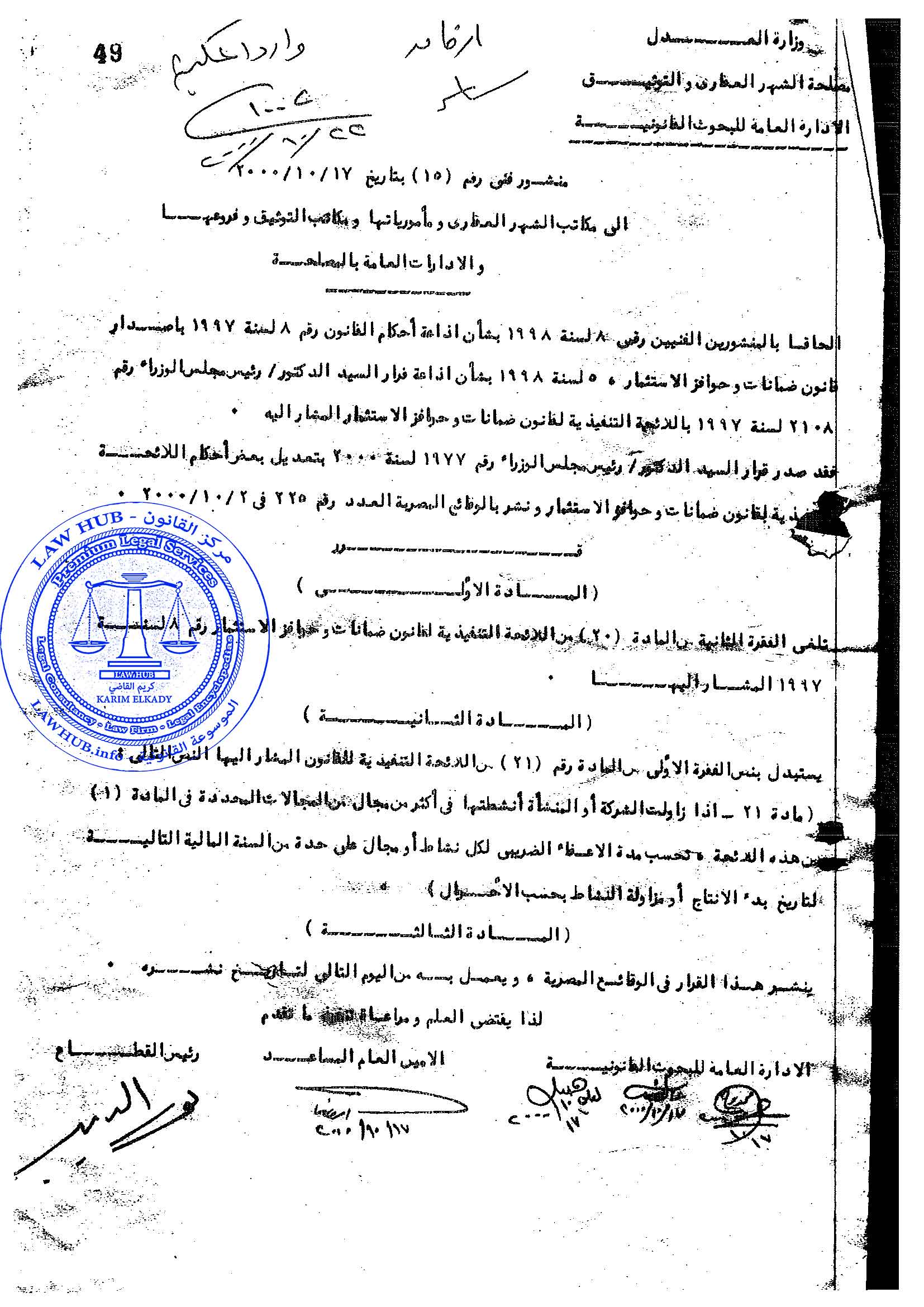 منشور فني رقم 15 لسنة 2000 الصادر من مصلحة الشهر العقاري والتوثيق 25 سنة ago x الرقم المرجعي: 4240 منشور الشهر العقاري رقم 15 لسنة 2000 يمكنك مشاركة المقالة من خلال تلك الايقونات #منشور الشهر العقاري رقم 15 لسنة 2000