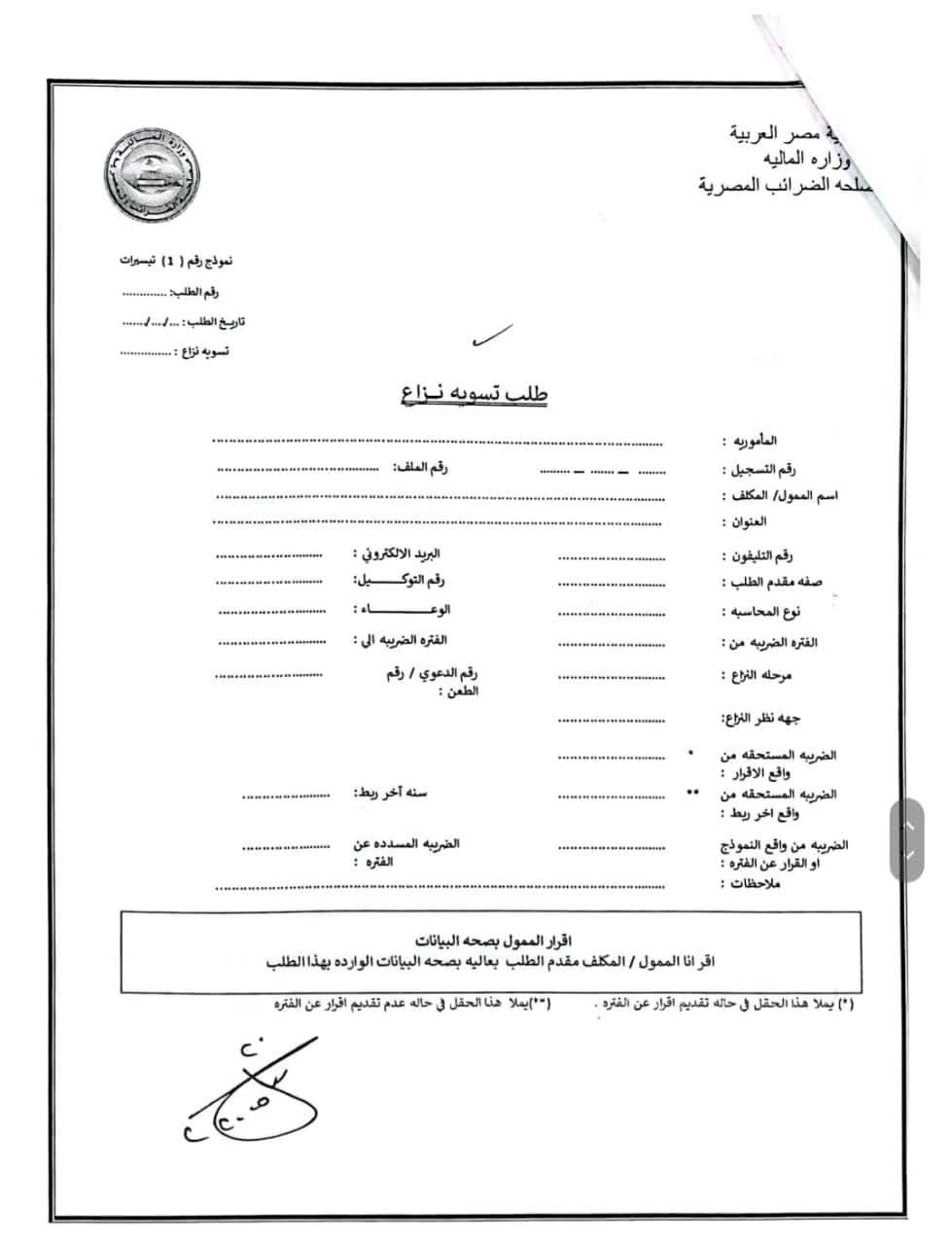 نماذج التيسيرات الضريبية الصادرة من مصلحة الضرائب المصرية