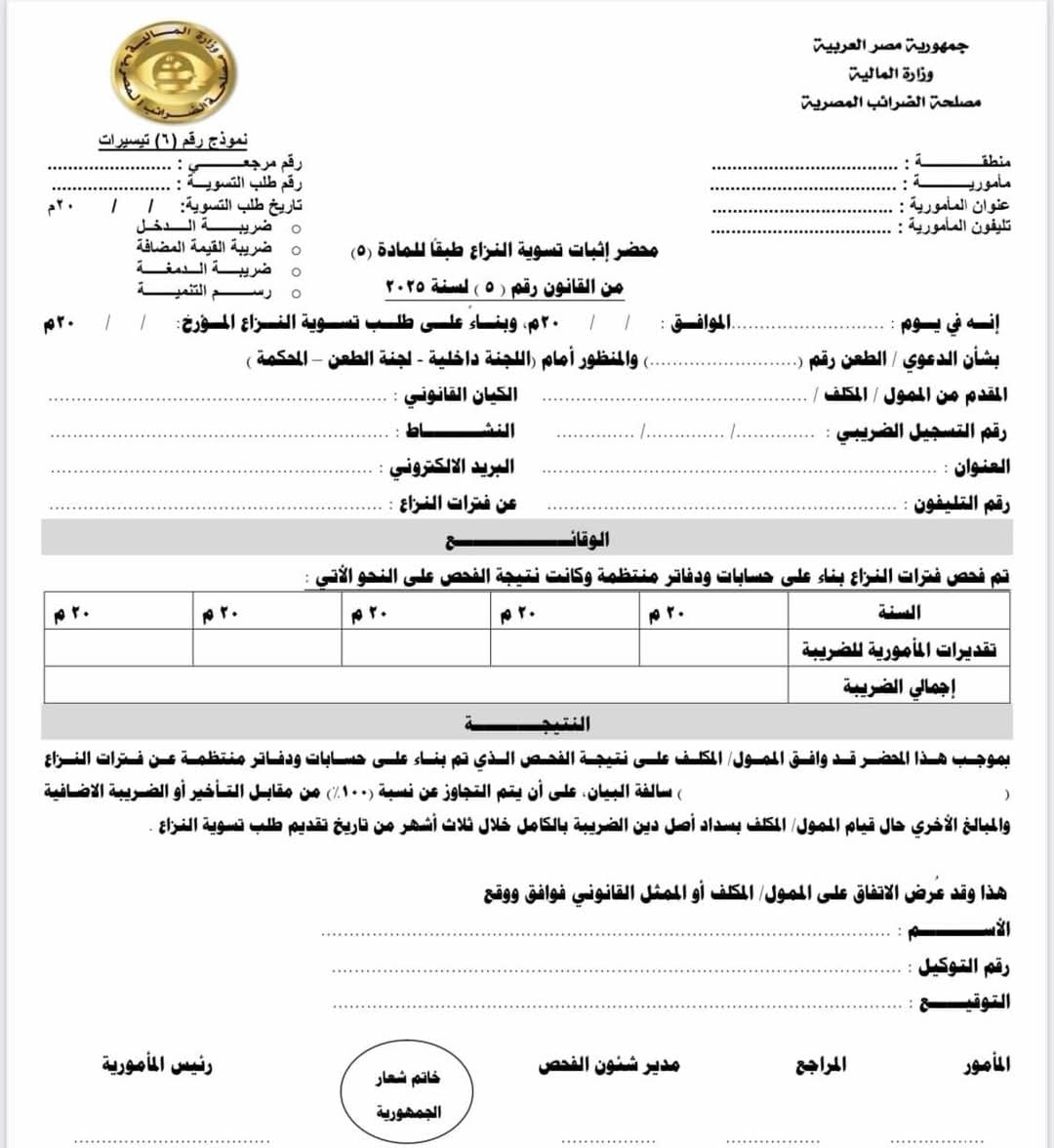 نماذج التيسيرات الضريبية وفقاً للقانون رقم 5 لسنة 2025 بشأن تسوية أوضاع بعض الممولين والمكلفين