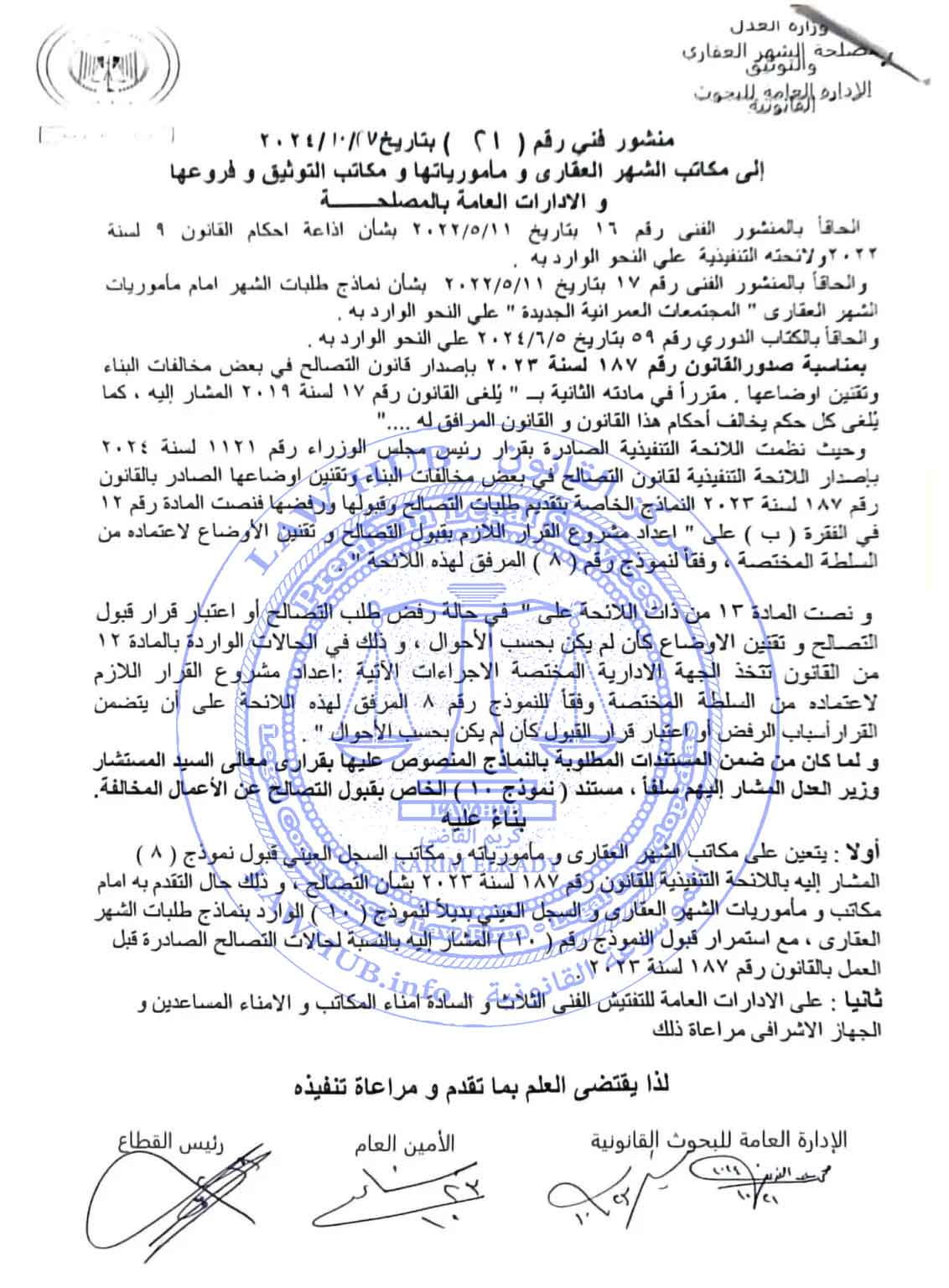 منشور فني رقم 21 بتاريخ 27/ 10/ 2024